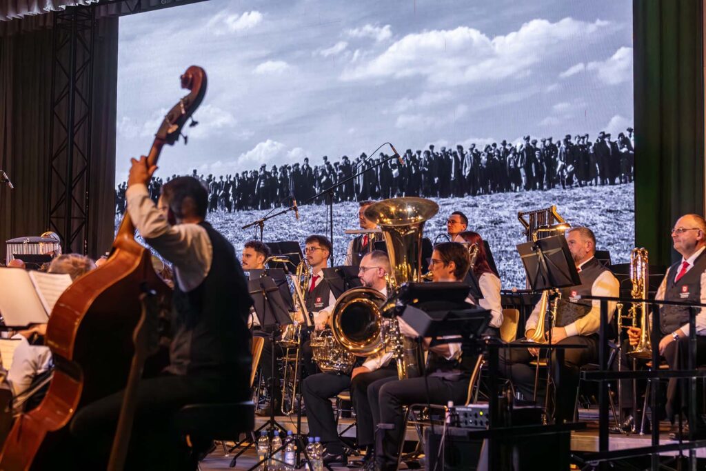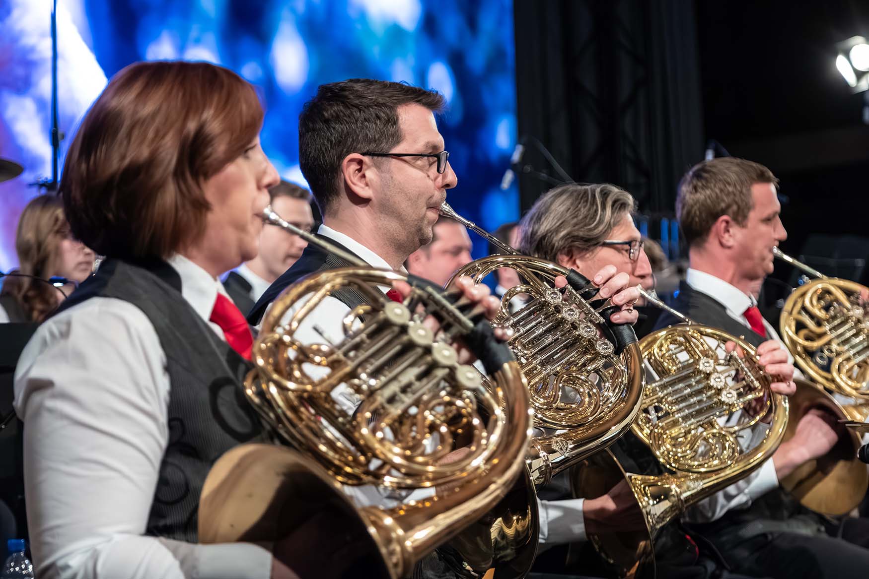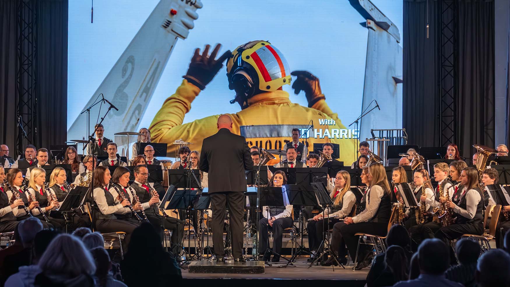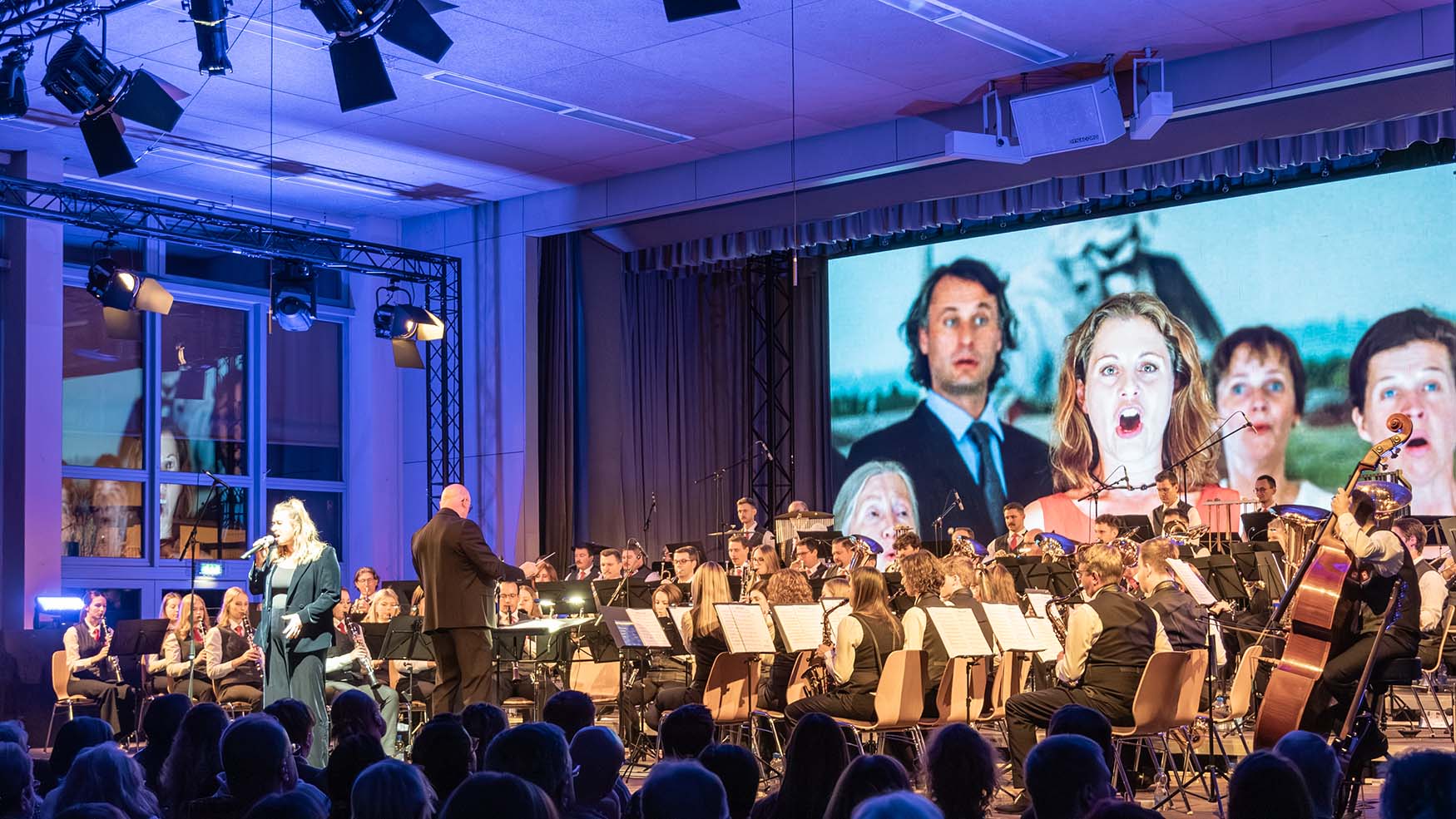 Auch 2025 setzte das Team der neuen Vorsitzenden auf die bewährte Mischung aus eindrucksvollen Filmszenen und perfekt darauf abgestimmter Blasmusik. Dennis Hanert war erneut dafür verantwortlich, die Filmausschnitte maßgeschneidert auf das ausgewählte Notenmaterial zuzuschneiden. Marita Kasischke führte mit Fachkenntnis und Charme durch das Programm und ließ es sich nicht nehmen, spannende Hintergrundgeschichten zu Filmen, Komponisten und Schauspielern einfließen zu lassen. Ein besonderes Highlight der Jubiläumsausgabe war die Rückkehr von Ehrendirigent und Mitbegründer Norbert Hann, welcher das große Blasorchester mit spürbarer Leidenschaft durch das Programm leitete, das die ganze Bandbreite der Filmmusik zeigte.