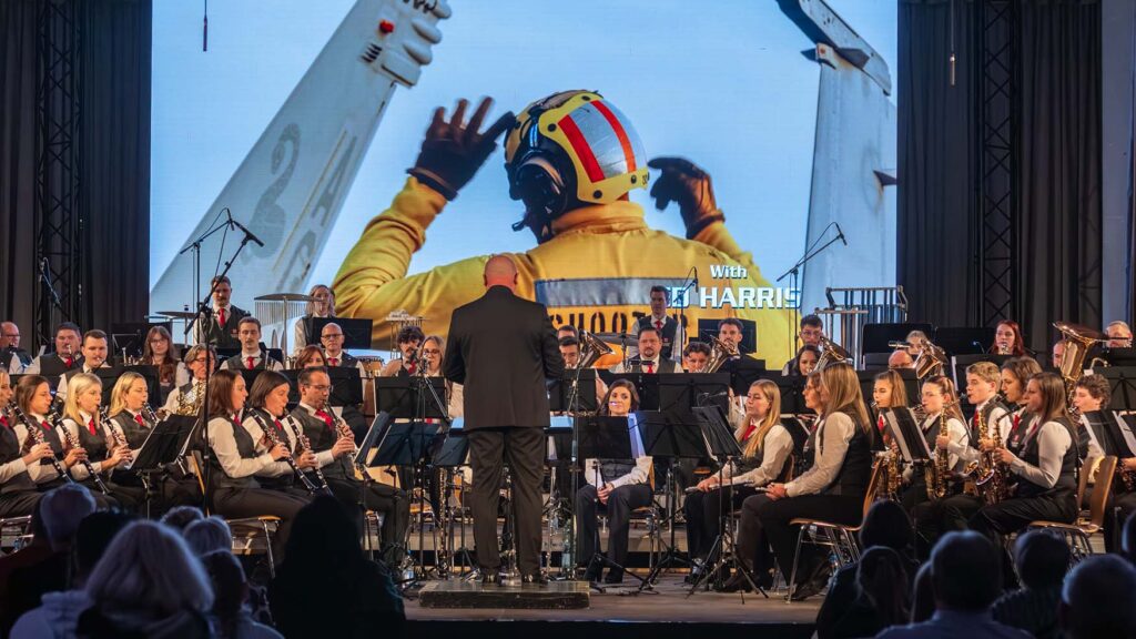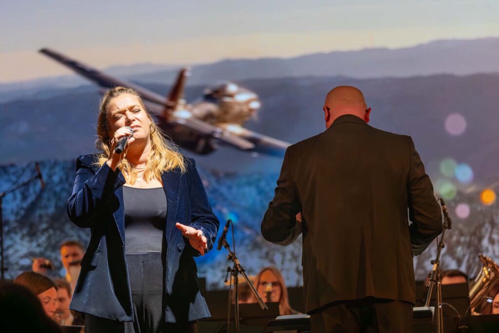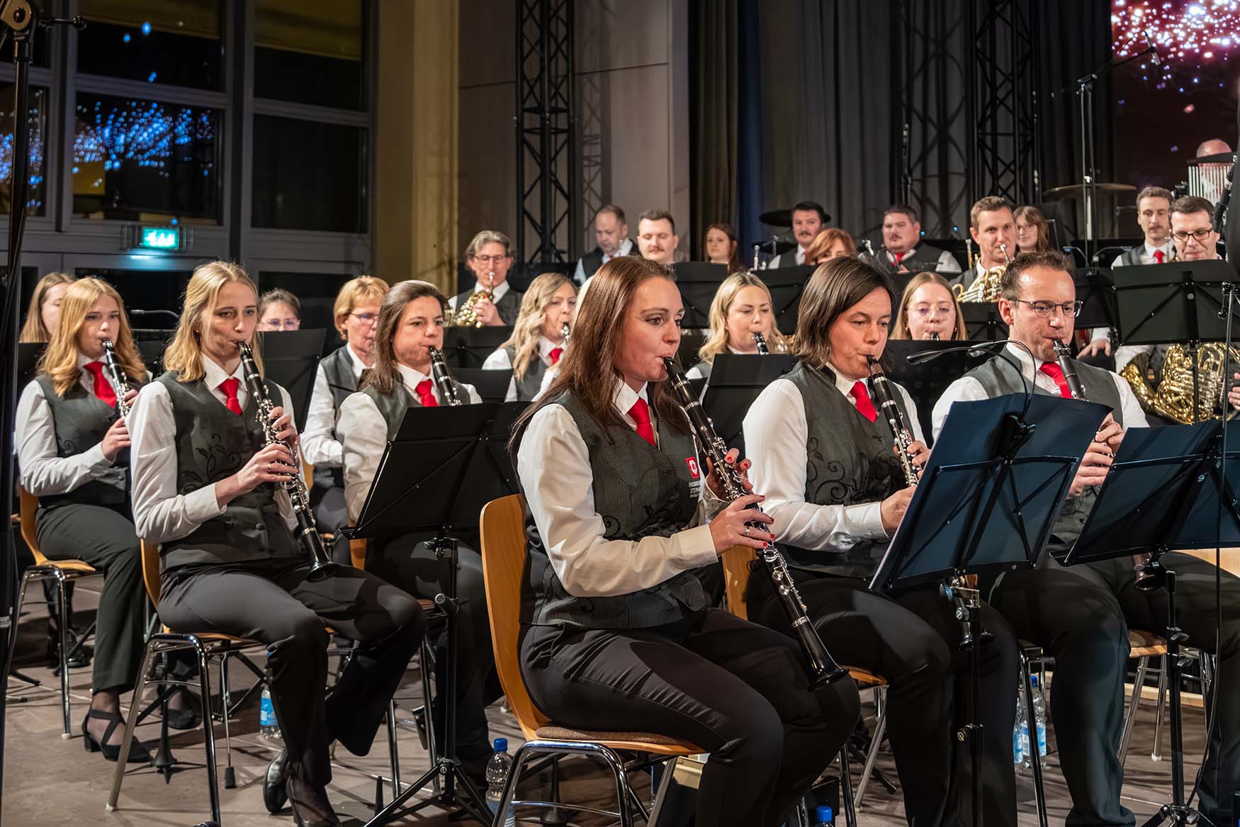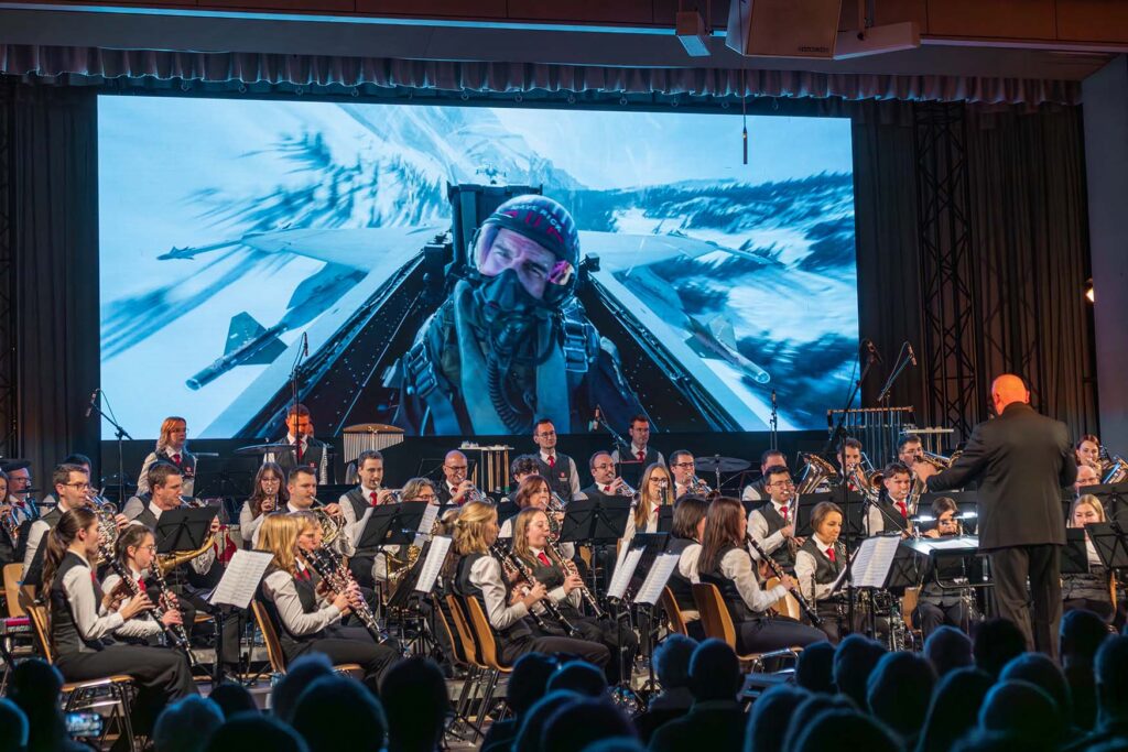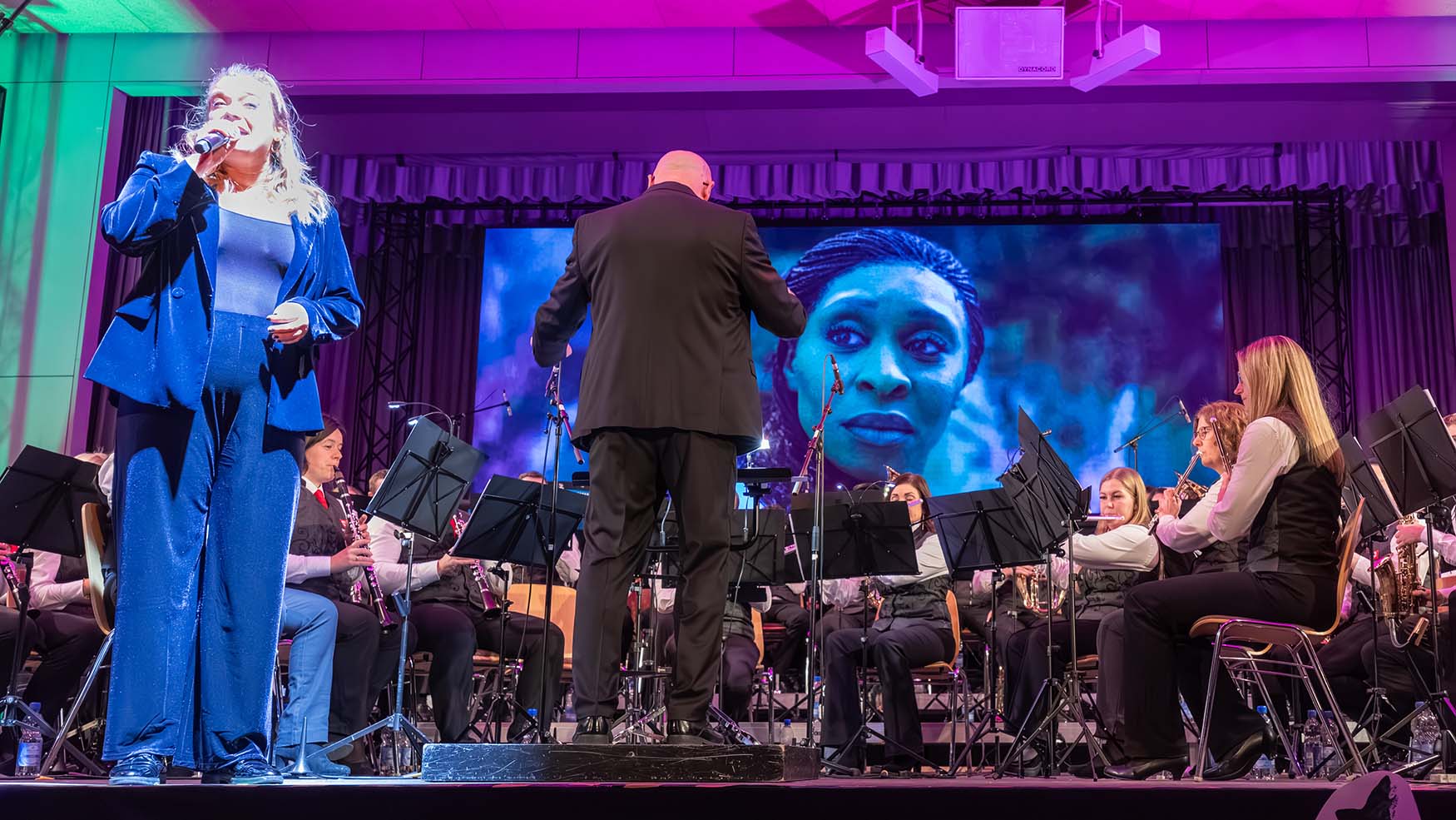 Wie in den vergangenen Jahren eröffnete das Große Blasorchester die Filmmusiknacht traditionell mit der Tagesschau und dem anschließenden Tatort, bevor die eindrucksvollen Klänge aus Afrika mit dem Stück „Der König der Löwen“ die Bühne erfüllten. Besonders beeindruckend gelang die Interpretation von „Schindlers Liste“, bei der Marion Zenker als Solistin an der Violine mit großer Ausdruckskraft glänzte. Mit Musik aus „Gladiator“ setzte das Orchester kraftvolle Akzente, ehe Regina Heiß erstmals an diesem Abend gesanglich zum Film „Top Gun“ in Erscheinung trat.