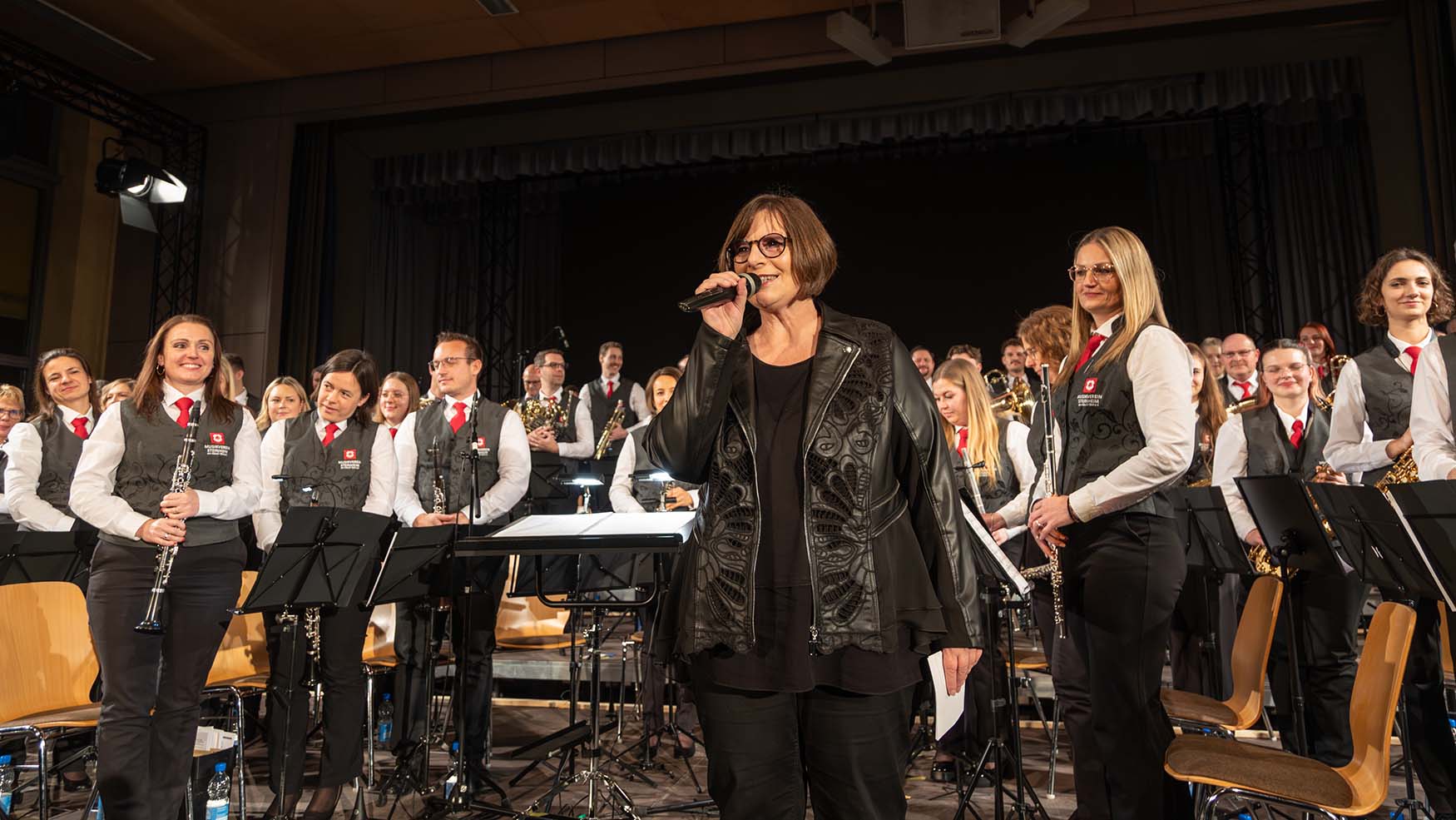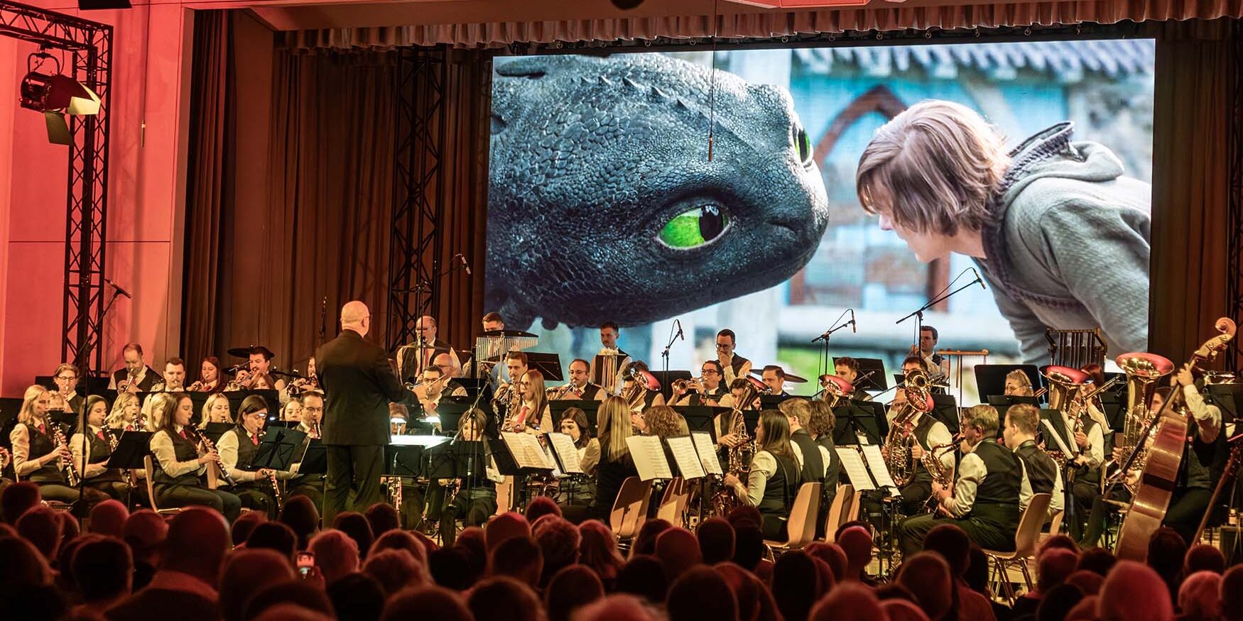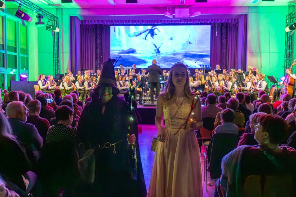 Nach der Pause beeindruckten Orchester und Sängerin gemeinsam mit einer ausdrucksstarken Interpretation von „Wicked“. Es folgten der humorvoll präsentierte „Grinch“ sowie das gefühlvolle „Gabriellas Sång“ aus dem Film „Wie im Himmel“, wobei die aus Sontheim stammende Regina Heiß auf schwedisch sang. Den krönenden Abschluss bildete das nahezu 15-minütige Werk aus „Drachenzähmen leicht gemacht“, das noch einmal die ganze musikalische Bandbreite und Ausdrucksstärke des großen Blasorchesters zeigte.