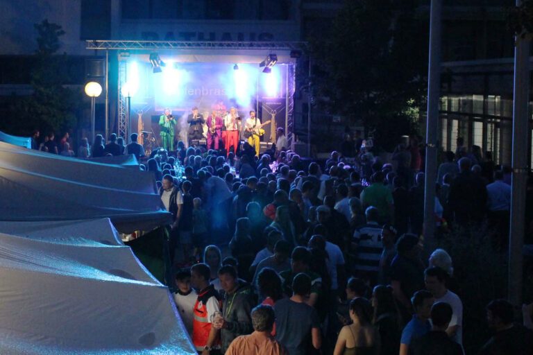 Am sommerlichen Freitagabend wurde auf dem Rathausplatz bis in die Nacht gefeiert. Gegen 23 Uhr setzte zwar Regen ein, das hielt die Besucher aber nicht davon ab, einfach weiter zu feiern. Die vielen Besucher hatten Spaß bei guter Unterhaltung durch die Band „Sun’n’Fun“ und dem reichhaltigen kulinarischen Angebot. Am Samstag musste der Musikverein „Harmonie“ Gestetten…